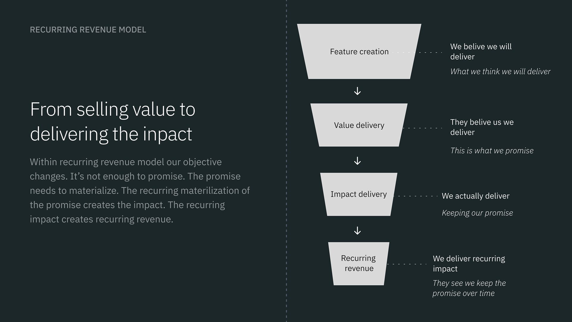 Operationalize growth with metrics, pricing models, and growth formulas, while shifting from value promises to impact delivery.